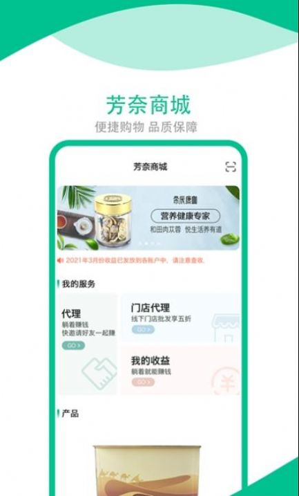 1.芳奈主要是一款在线购物软件,里面拥有大量商品资源,种类众多;