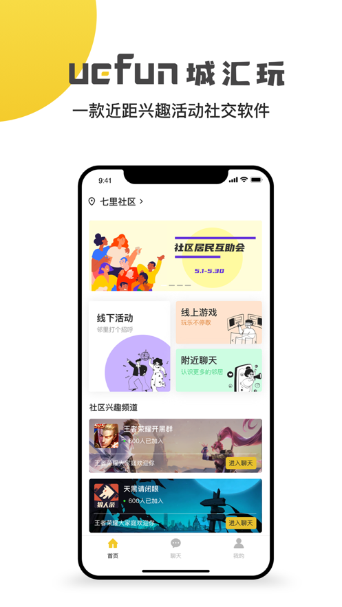 1、城汇玩,一款近距离社交软件。以以兴趣为导向,以活动为纽带连接用户。