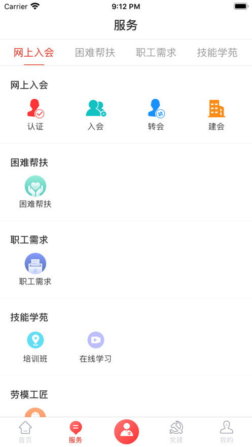 该平台提供网上入会,扶贫救助,员工需求和技能学院等。