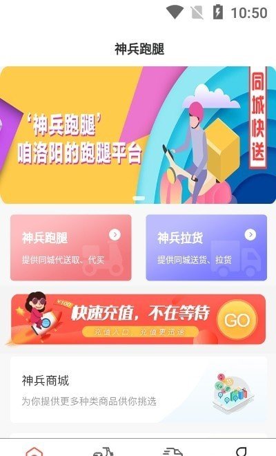 神兵跑腿app,一款非常实用的手持式外卖跑腿软件,在软件上您可以自由的进行下单,骑手会以最快的速度将您所购买的商品送到你的面前!速速下载进行体验吧!