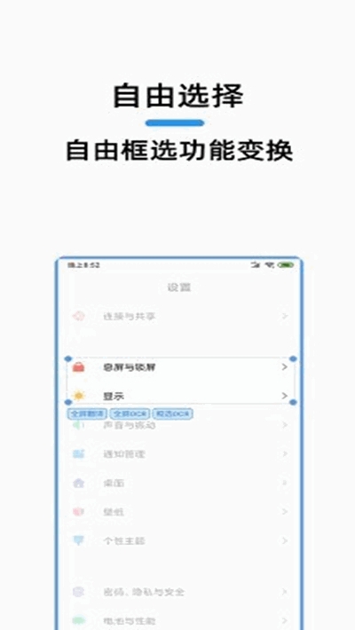 用户是可以自由的选择功能,支持全屏翻译,全屏OCR和帧选择OCR。