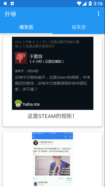1、是一款搞笑段子软件平台,扑哧app中拥有超多的搞笑段子和图片,让你每天都有一个好心情;