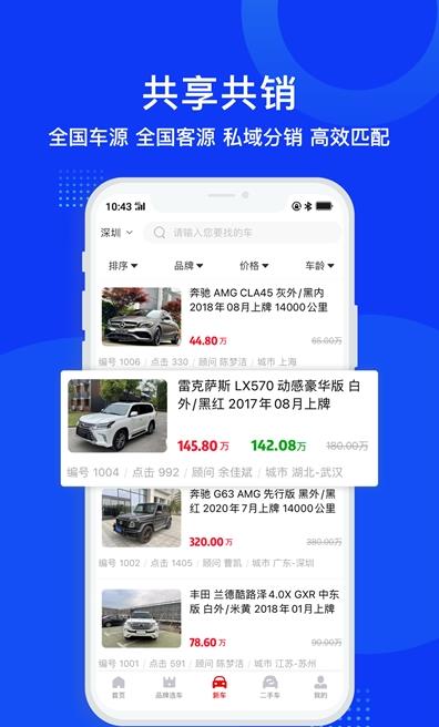 3、服务于全国汽车经销商、线下服务门店的车源共享交易平台。
