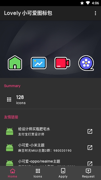 Lovely小可爱图标包app是一款趣味实用的手机图标制作软件,软件内为用户提供了超多小图标素材和资源,用户可以根据自己的喜好在线选择使用,不定时的还会更新最新的精美小图标,让桌面变得焕然一新,同时操作起来也十分的简单!