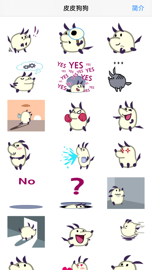 贴纸上的人物都是狗,每一个表情都非常生动。