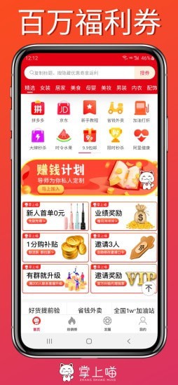 掌上喵app是一款最近深受大家喜欢的手机网购软件,软件中能够为用户提供各种不同种类的商品资源,分类十分清楚,想要什么可以直接在软件中搜索关键词即可,每天都会有每天的福利,各种优惠卷以及折扣活动给到用户们,商品都是经过专业团队审核,可以放心下单购买,快来试试吧!
