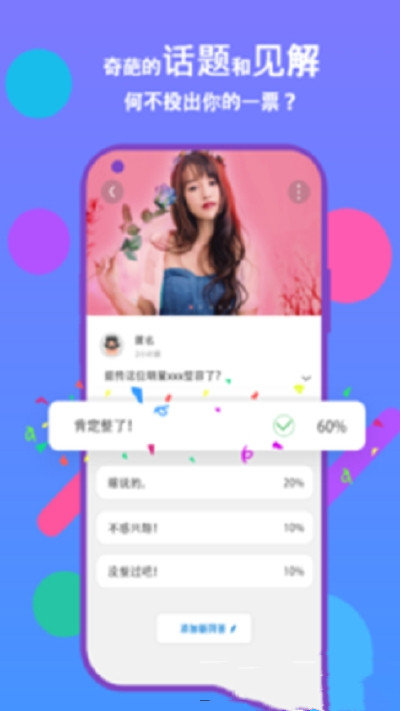 玩玩投app,最新上线的聊天交友互动平台,在里面可以发现的话题内容丰富、有趣,总能找到种话题是你所感兴趣的,能将自己的观点进行自由表达,还能进行互动,发现能聊得来的朋友。任何有趣的事情都可以在线发布,从而让不少人加入里面进行互动。
