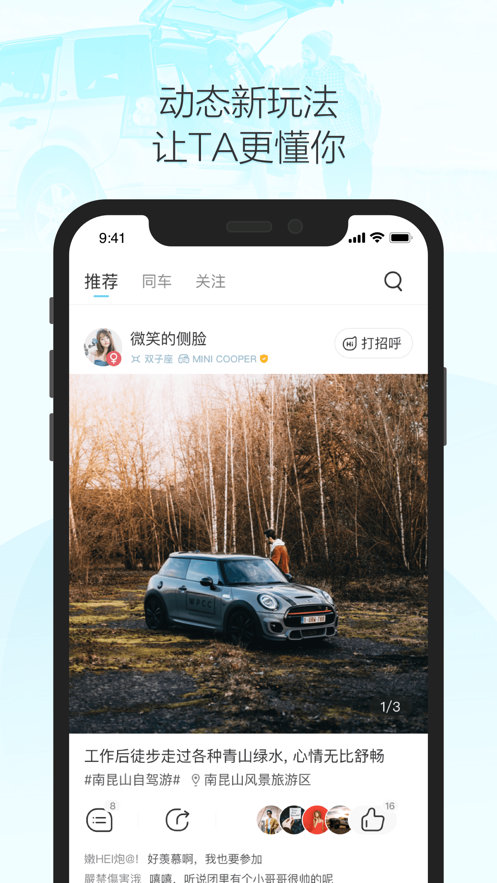 3.这里有超多的车友聚集,随时都可以在平台上发布动态,可以更加轻松的互动,渡过有趣的时光