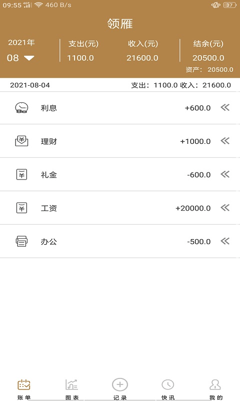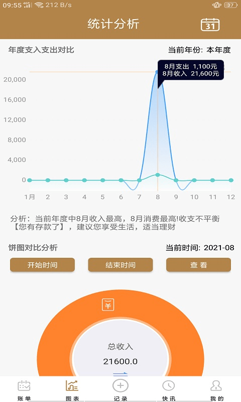1. 再也不用担心钱花在哪里了,账务流程简单,图表显示清晰