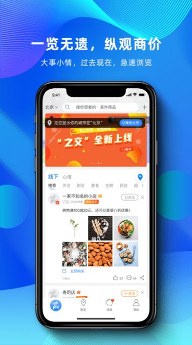 2、随时随地,查看附近商家优惠信息,美食、休闲、娱乐、购物,优惠信息一个不漏