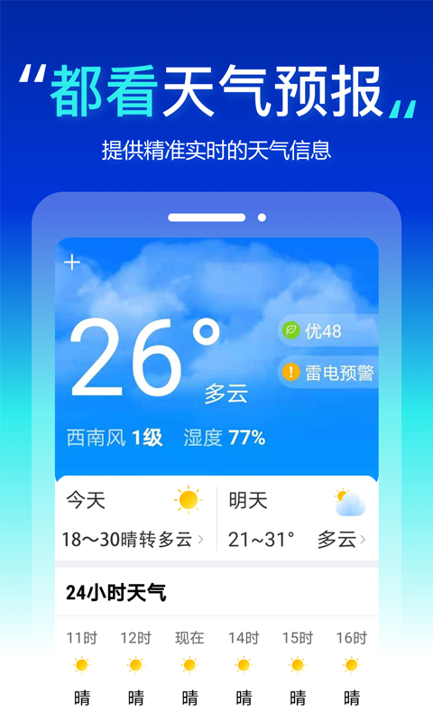 2、天气查询,大字号预报天气变化,不伤眼,更懂你,海量模板,超过1000+套精美模板供你选择;