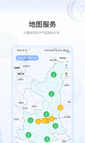 2、地图服务,比赛场馆及天气监测站分布,便于用户知晓;