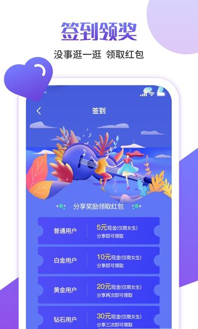 2、签到还有奖励领取,各种红包奖励推送,真实见面拒绝虚假;