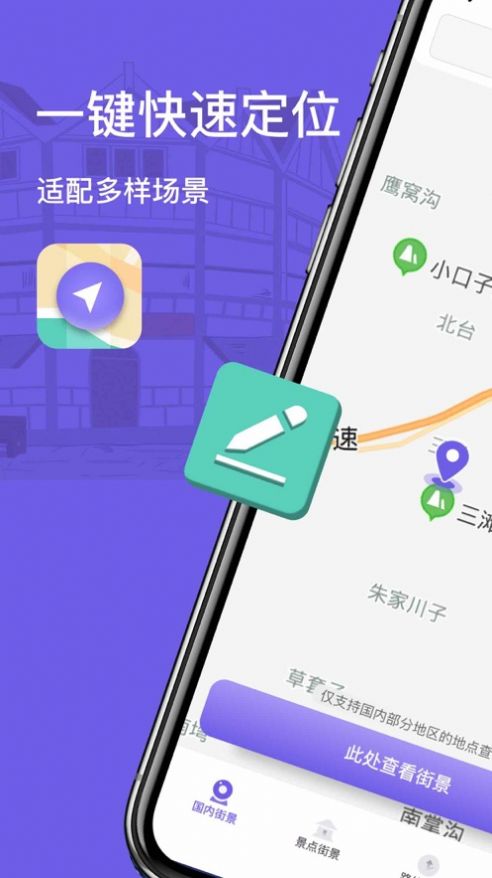 功能非常简单方便,方便大家在手机中定位使用,快速呈现街景。