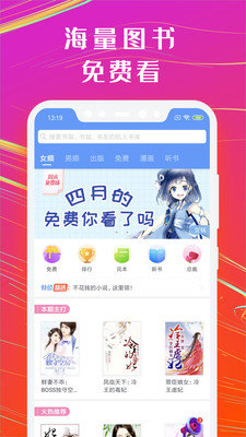 3、精选书籍:女频、男频、出版、免费小说任意看;