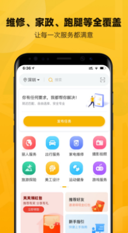 1.服务丰富,涉及面广,用户可以通过软件找到各种优质的服务内容,涉及方向多。 用户可以自由选择自己的需求,轻松下单订购服务。