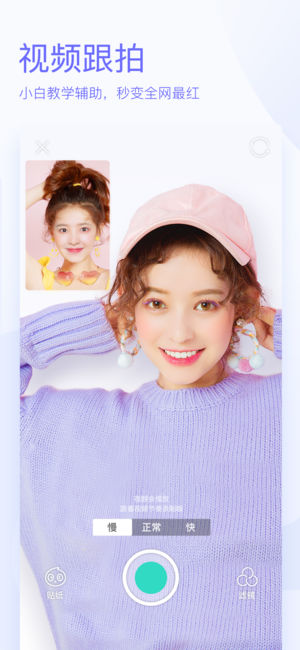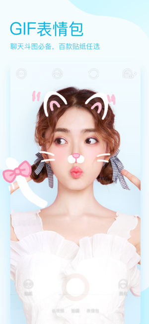 1、打开软件之后出现的是照相界面,点击灰色的圆钮是照相,长按即可录制视频。可以给自己添加特效,左面的按键是特效,右面的按键可以给人美颜,有着类似于美颜相机的功能。