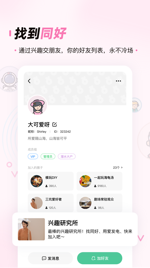 2、找到同好,通过兴趣交友,你的好友列表,永不冷场