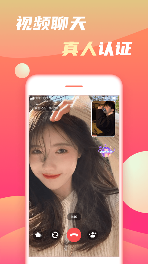 2、用户可以在这里找寻属于自己的缘分,全天候所有的用户都可以进行视频聊天,视频聊天界面高清码率;