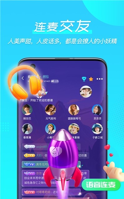3.一个真正的语音互动聊天平台,缘分1V1,多人聊天,语音匹配聊天遇到对方,轻松找到最懂你的声音。