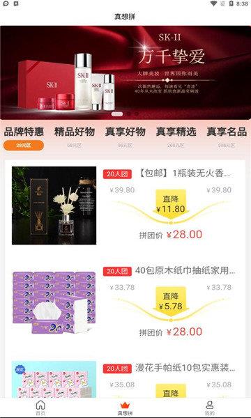 真想拼购物app是一款非常不错的手机网购软件,软件中能够为用户提供各种不同种类的商品,可以自由选择,每天都有各种优惠卷和折扣活动可以自由领取使用,所有商品都有详细的介绍,经过专业团队进行审核,可以放心下单购买,各种各样的优惠福利可以为用户省下不少钱哦。