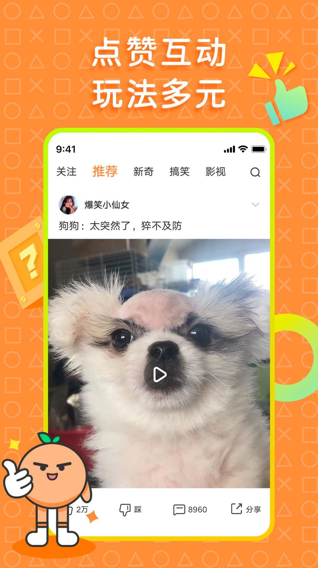 橘子好看app,一款非常好用的手机短视频软件,在这里,每天都有大量的短视频提供我们观看,视频类型很多,有体育,搞笑、等一些类型视频,用户可以根据自己自己喜欢的视频来进行搜索观看,每天都会不断的更新视频,带给用户们一个不一样的观看体验,非常的有趣。