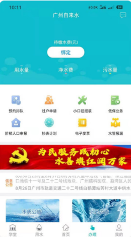 广州自来水APP按照官方渠道模式搭建各种功能,包括用户支付、各种业务流程管理、使用过程中的电子发布等。 操作更方便。