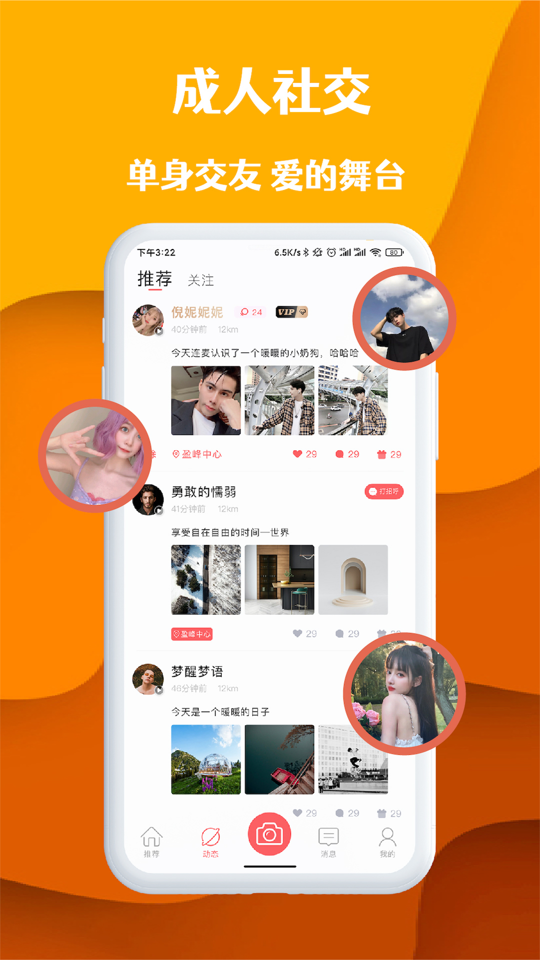 1、【生疏商务社交】纪录多彩生活一瞬间,城市广场公布动态性,智能化有趣的事强烈推荐,周边V友查寻,网上群互换智能化名片加好友,网上组织活动,和达人线上互动添加好友。