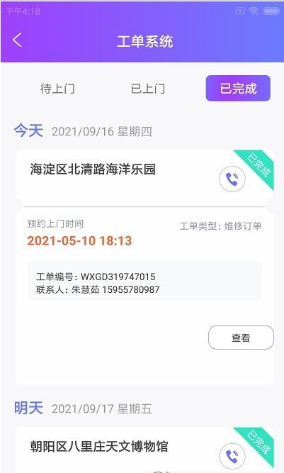 3.根据订单的内容进行智能分配,使每一位维修师傅都能获得一定的订单,完成后获得收入