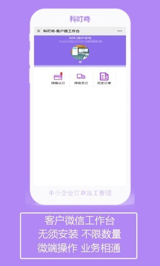 科叮咚app通过微信端功能,实际客户订单确认及员工加工数据填制上报简易操作。