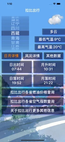 拉比出行app是一款功能十分强大齐全的出行服务软件,专门针对旅行制作,软件中能够为用户提供各种出行需要的信息,包括如天气、空气质量、油价等,所有功能都是免费提供给用户使用,不受任何限制,可以随时随地操作查看,使用界面非常简洁,深受大家喜欢,快来试试吧!