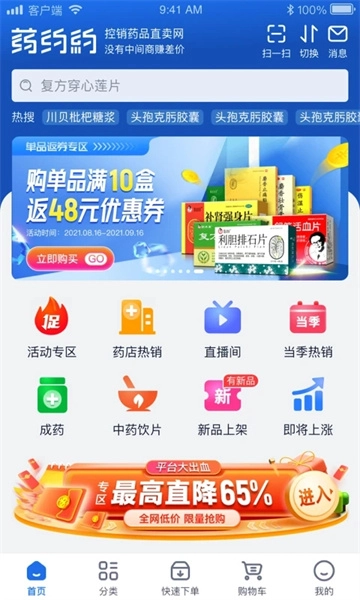 药约约app是一款全天24小时都有人在线的手机网购软件,软件中医药商品非常齐全丰富,支持一键搜索功能哦。