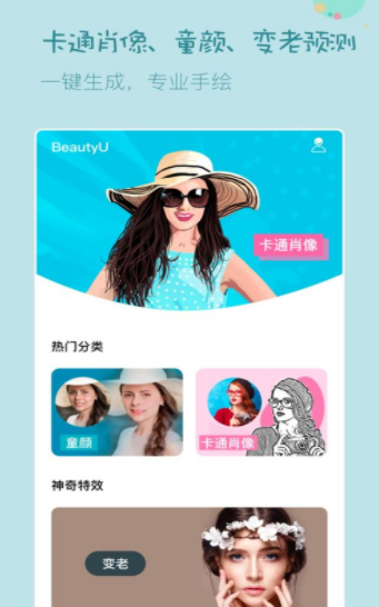 BeautyU相机app是一款深受大家喜欢的手机相机软件,软件中能够为用户提供各种拍摄功能,并且还有各种编辑素材可以自由使用,包括美白、补光、眼睛美化、脸部修饰等功能,可以做到、一键美颜功能,很容易就可以上手操作,就算是新手也能很快上手,快来体验一下吧!