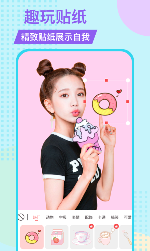 多种材质:百种创意贴纸,个性化字体让您的图片传达美丽。