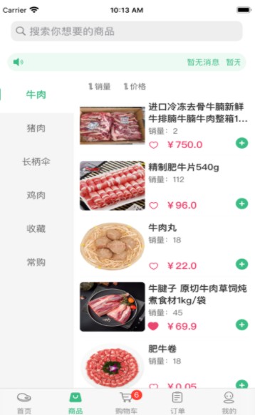 3、各种肉类商品都是有详细的分类,购物简单就可以选择。