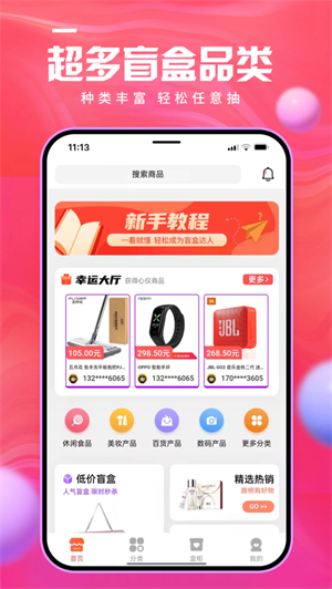 盲盒集市app是一款优惠非常不错的手机盲盒网购软件,软件中商品齐全,可以自由下单购买,能够包邮到家,快来体验一下吧。