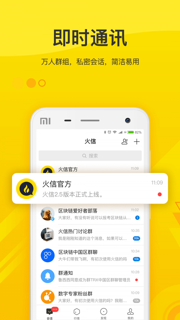 1、聊天会话,即时通讯,万人群组,私密会话,红包福利,有价值的项目方社群都在这里;