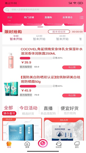 ANJUR app是一款非常不错的手机网购软件,软件中能够Wie用户提供各种不同的商品资源,并且不仅商品齐全,而且优惠更是多样,包括9.9包邮、0元秒杀区等都可以自由参加,任何年龄段用户们都可以轻松上手,支持一键搜索功能,想要什么可以直接搜索关键词即可,快来试试吧!