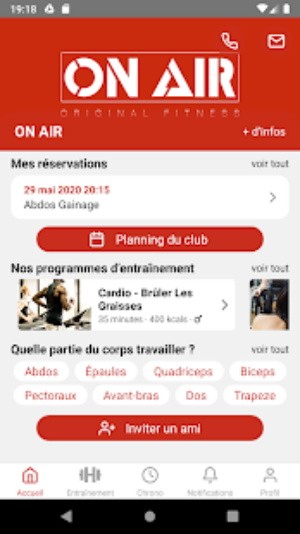 健身俱乐部(ON AIR FITNESS)app是一款非常专业好用的手机健身服务软件,软件中能够为用户提供各种不同的健康视频以及学习课程,不仅都是免费提供,并且还有专业的教练在线进行专业指导,完全可以做到根据用户情况进行制定专属自己的健身计划,养成良好好锻炼运动习惯。