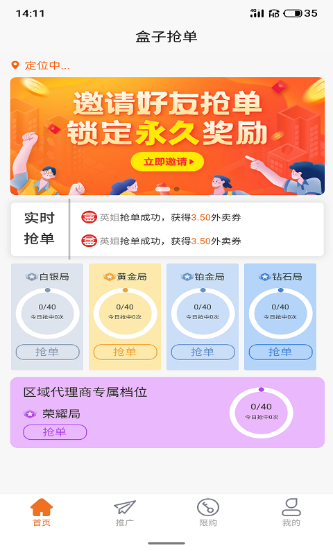 1、邀约新用户参与抢单,就可以得到外卖券的奖励;