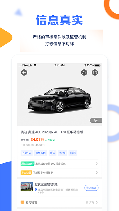 1.精准筛选:您可通过品牌,型号,颜色等多种预设条件,定位您的下一台爱车