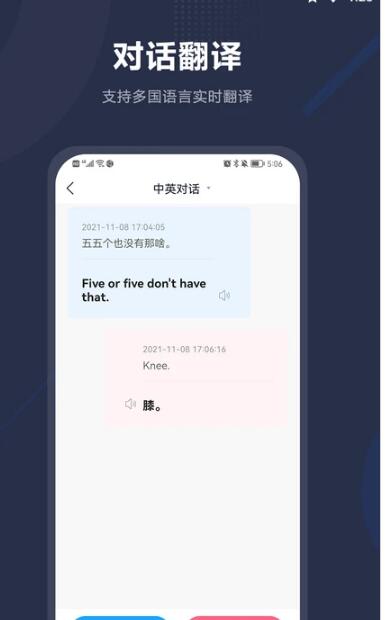 3、对话翻译:目前支持多种语音对话翻译,可实时面对面交流。
