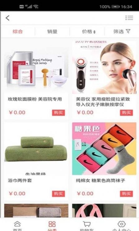 2、在综合栏目中可以看到众多零元商品,方便用户朋友根据需要随时在线购买。