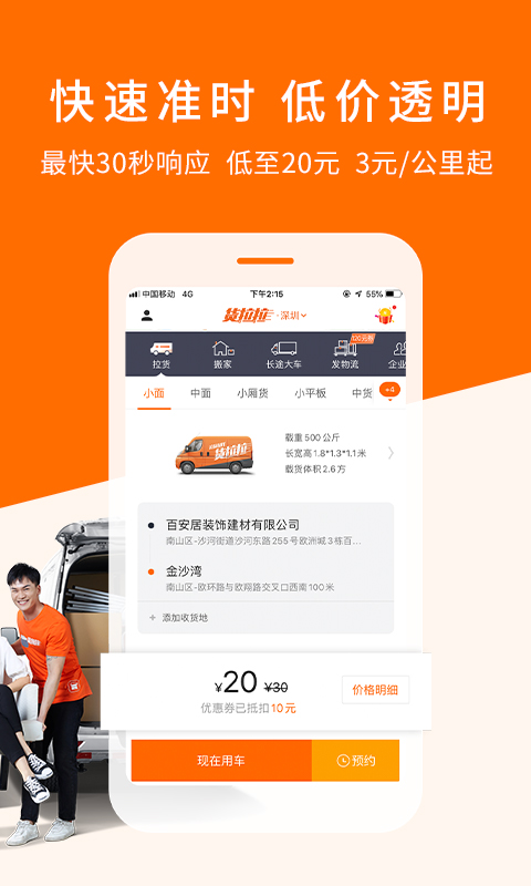 同城拉货、同城送货,手握货拉拉,在2265全城在线面包车、货车供您选择,30元即可帮您送货到家