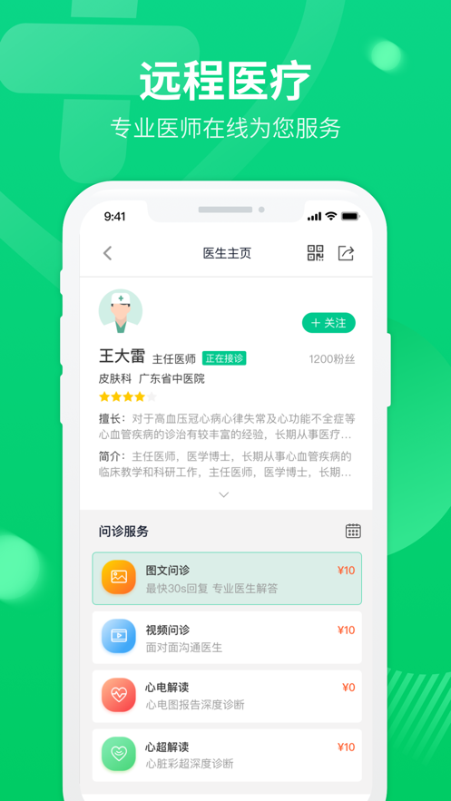 2、为患者提供更多远程问诊服务,让优质的医学资源可以共享。