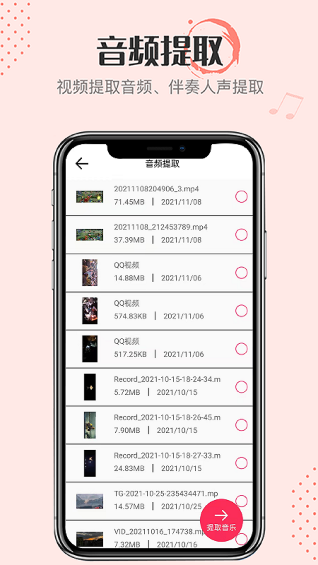 2.将视频MV秒变音频文件。还可以从本地相册中导入视频进行提取。