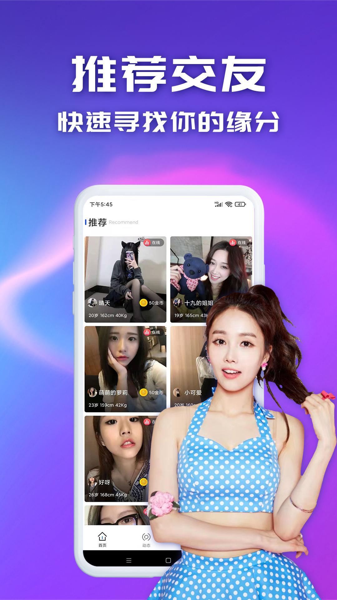 2、而且还有专门的动态广场可以让你来展示自我,在线交友更加的可靠