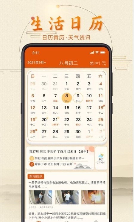 3.在这个软件当中,查看天气情况和阴历阳历的信息都是很方便的。