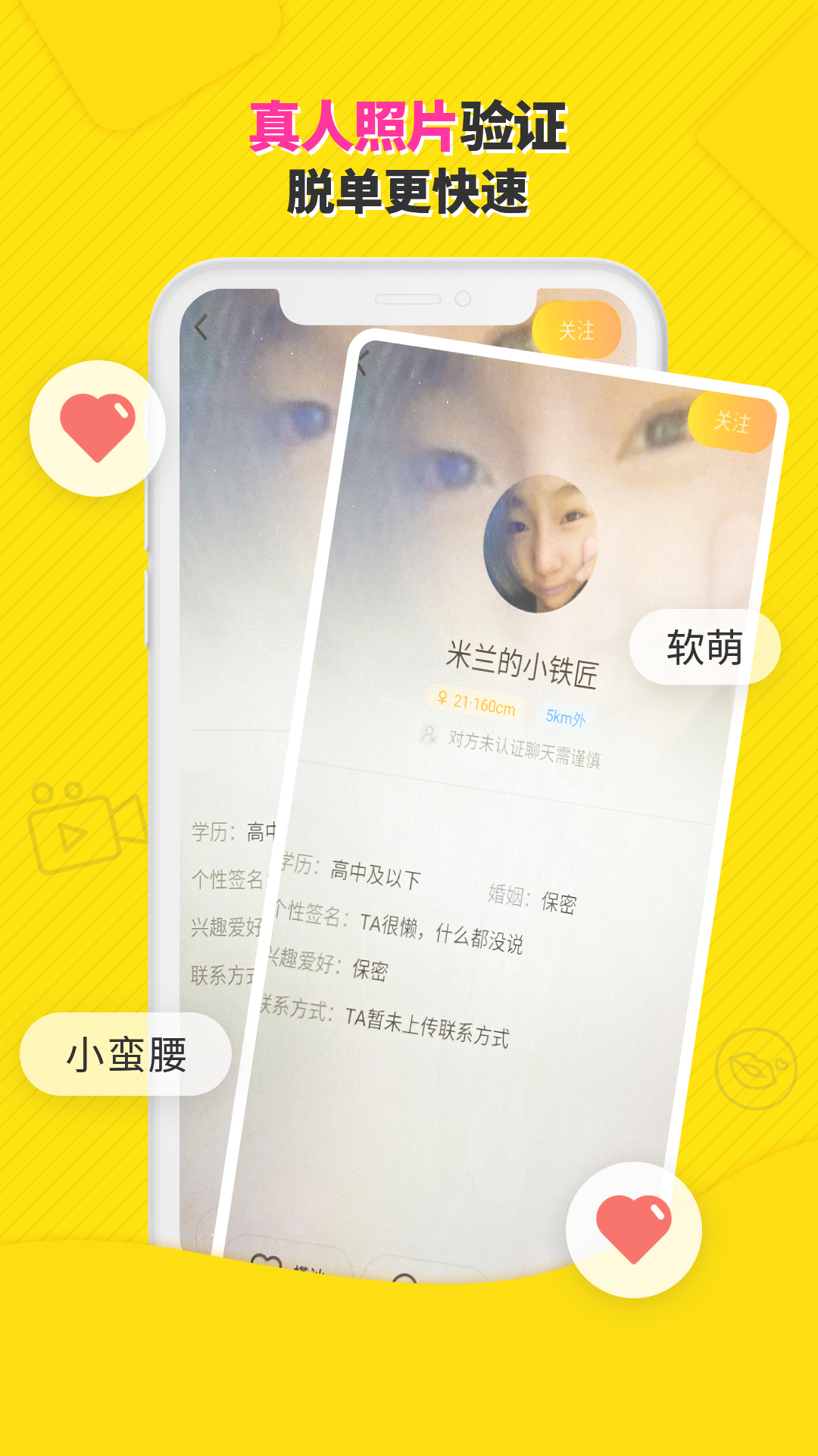 【真实可靠】-拒绝照骗,全程通过人脸识别+人工审核的方式确保用户可靠性、真实性;真人活体认证,拒绝照骗,保证用户的真实性;
