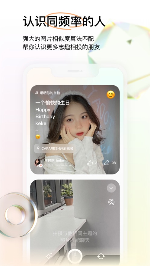 2.独特的现场拍摄记录生活,聊天,轻松找到志趣相投的人。